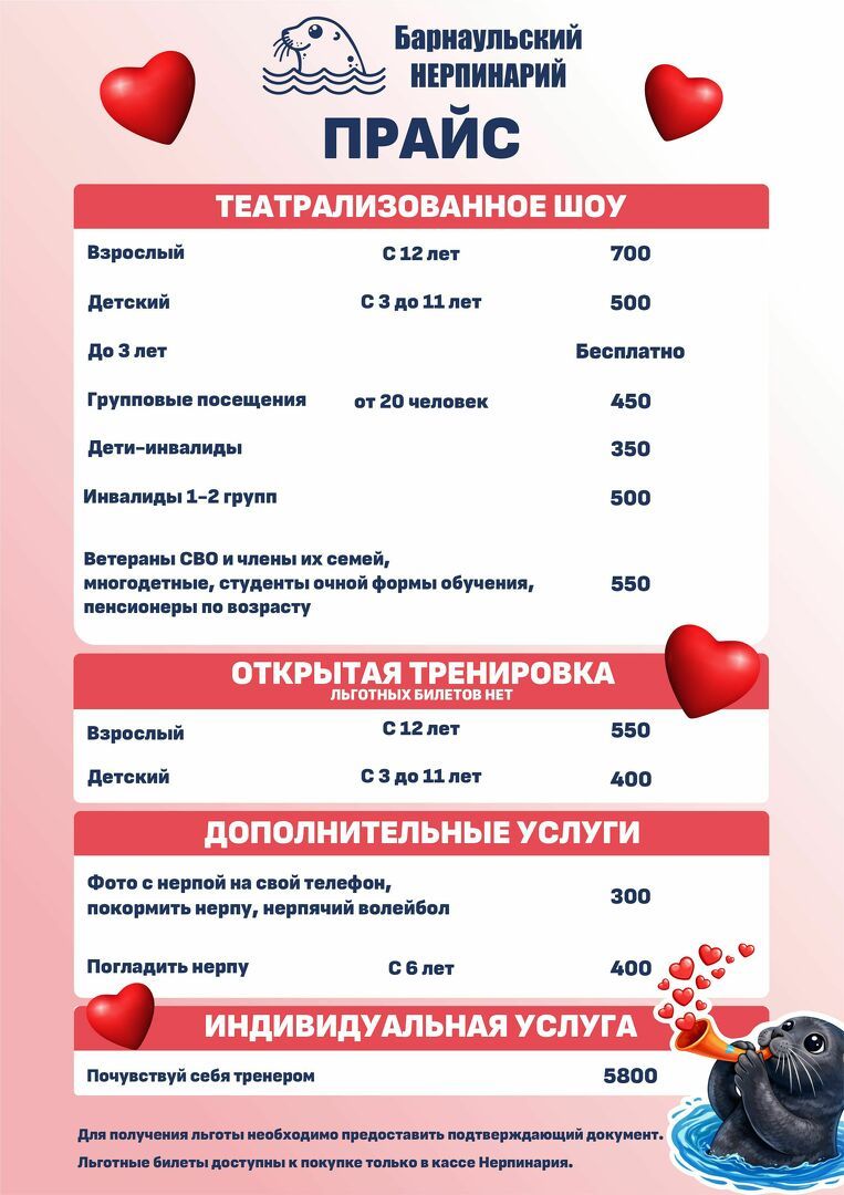 Для получения льготы необходимо предоставить подтверждающий документ. Льготные билеты доступны к покупке только в кассе Нерпинария.